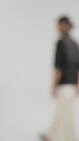 The white pants are complemented by matching handcrafted flowers and kantha detailing on one side, creating a harmonious and sophisticated look.